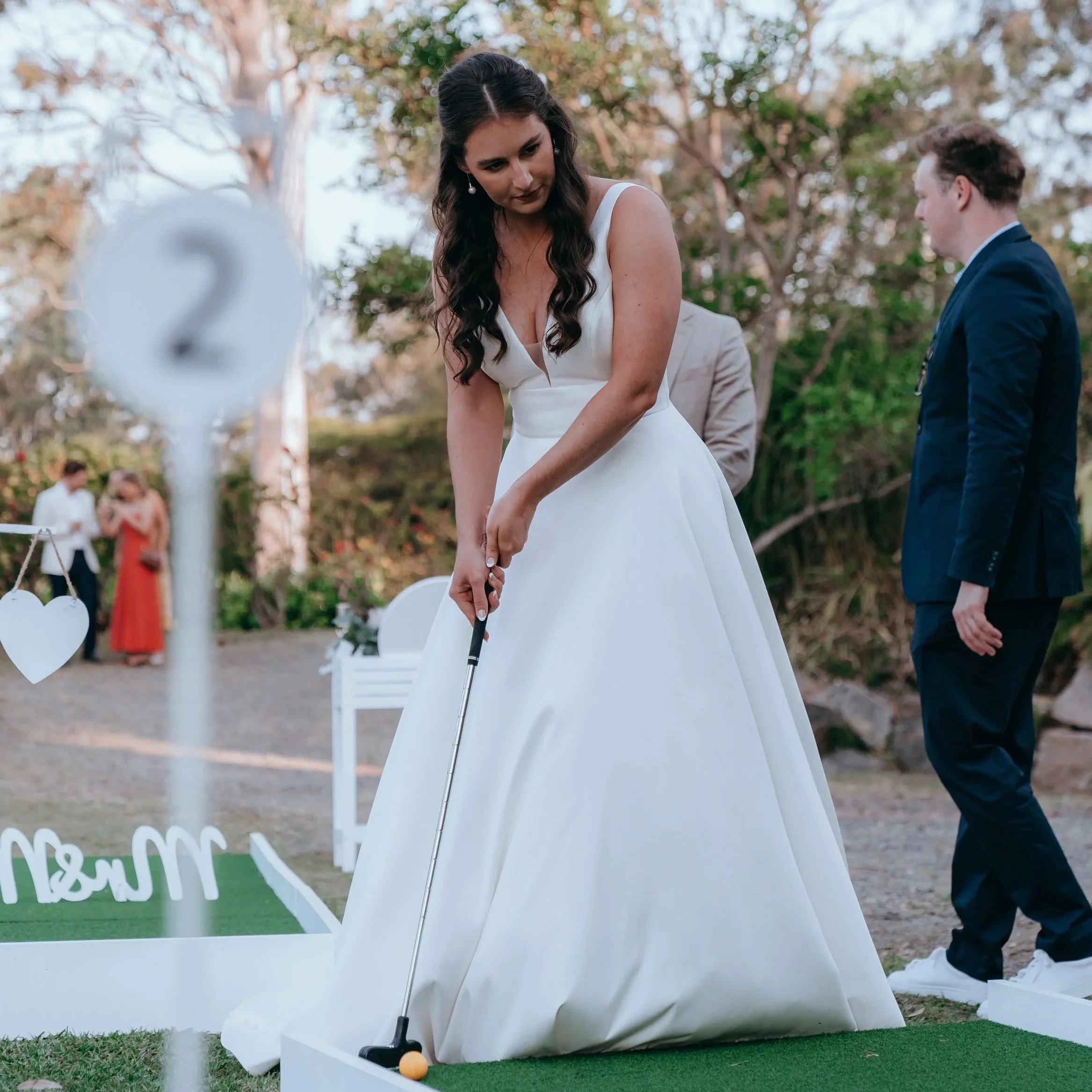 Guests from different parts of your life are meeting for the first time. Some people are shy. Others don’t know where to stand or what to do while they wait for the reception to begin. That’s why more couples across Brisbane, the Gold Coast and the Sunshine Coast are adding portable mini golf to their wedding cocktail hour.